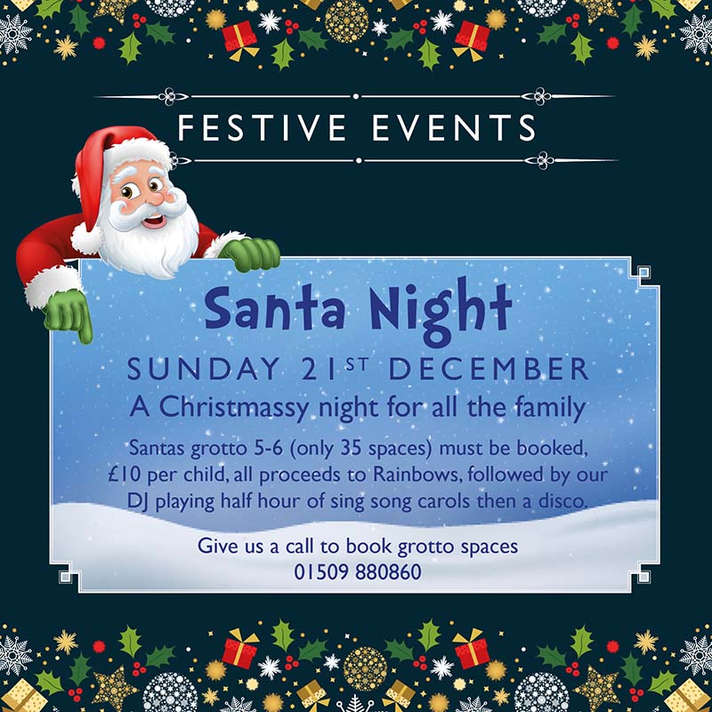 Give us a call to book grotto spaces 01509 880860